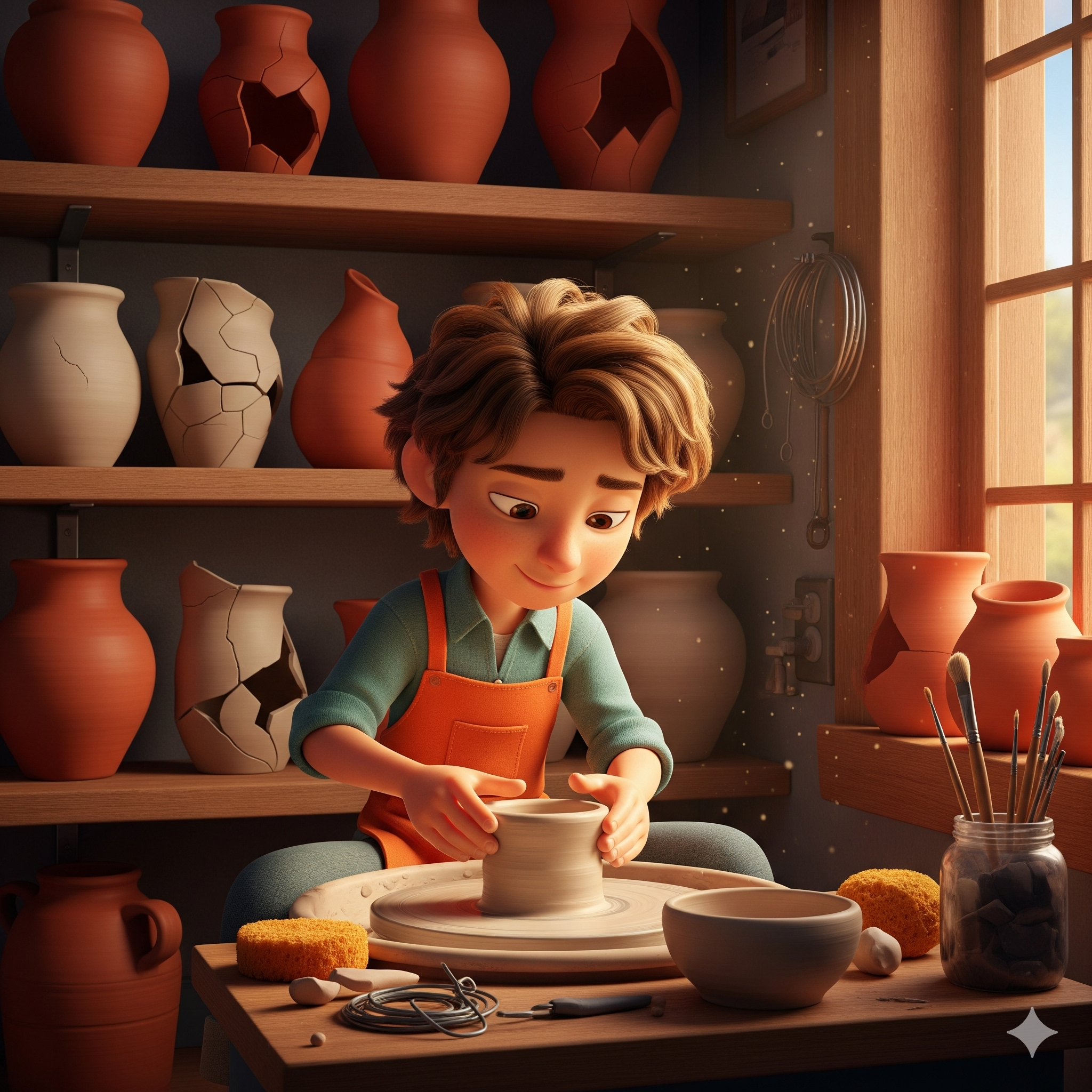 Some days were harder than others. There were mornings when the clay wouldn’t listen and nights when the young person went home with sore hands and a heavy heart. But bit by bit, trying again and again became a habit. This was the true secret to success—learning to persist despite difficulties.