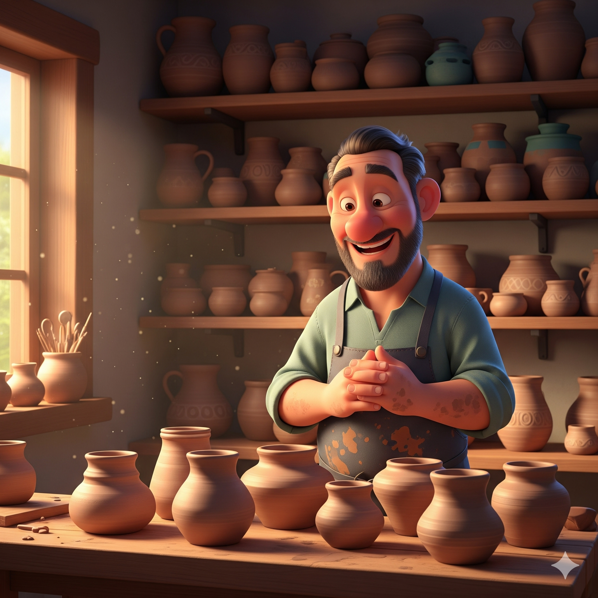 The potter felt happy seeing his work. He knew it wasn’t easy, but it also wasn’t impossible. Success came from keeping patience, learning steadily, and being consistent—not giving up halfway. This was the secret to success in action.